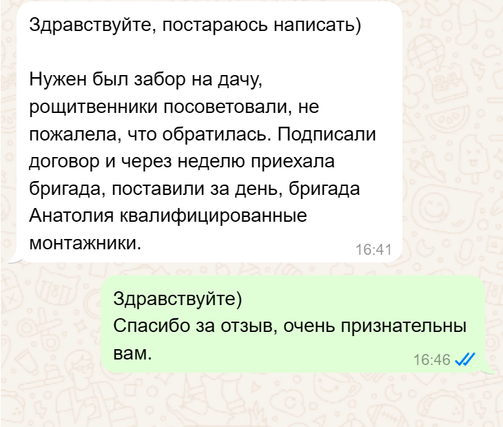 Позвоните нашему менеджеру. Он направит на ваш участок замерщика, который приедет в любое удобное для вас время. Специалист замеряет периметр, отметит на плане участка его особенности, сделает предварительный расчет стоимости установки.