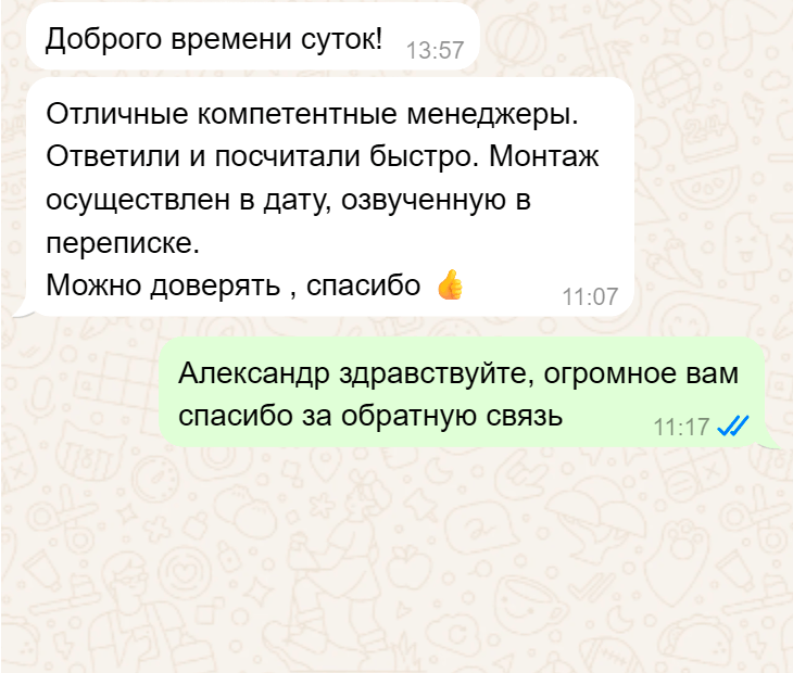 Выезд замерщика для точного расчета во все районы Москвы и Московской области.