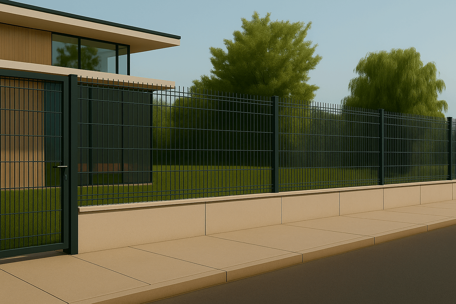 3D заборы — состоят из сварных металлических панелей с рифленой структурой, что увеличивает их жесткость. Часто используются для ограждения промышленных объектов, парков и частных домов.