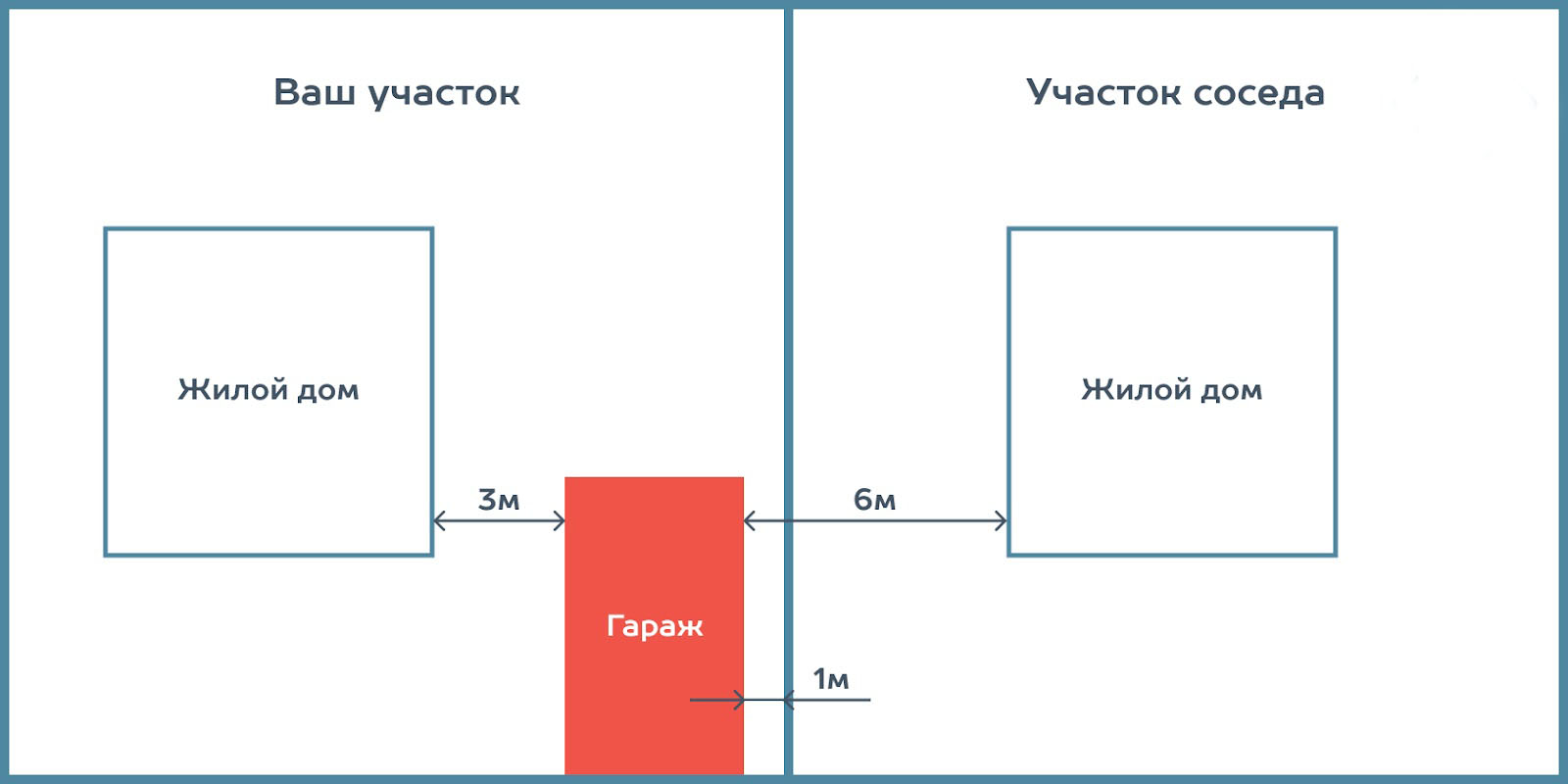 - Гараж должен находиться не менее чем в 1 метре от границы участка, если в нем не содержатся животные.