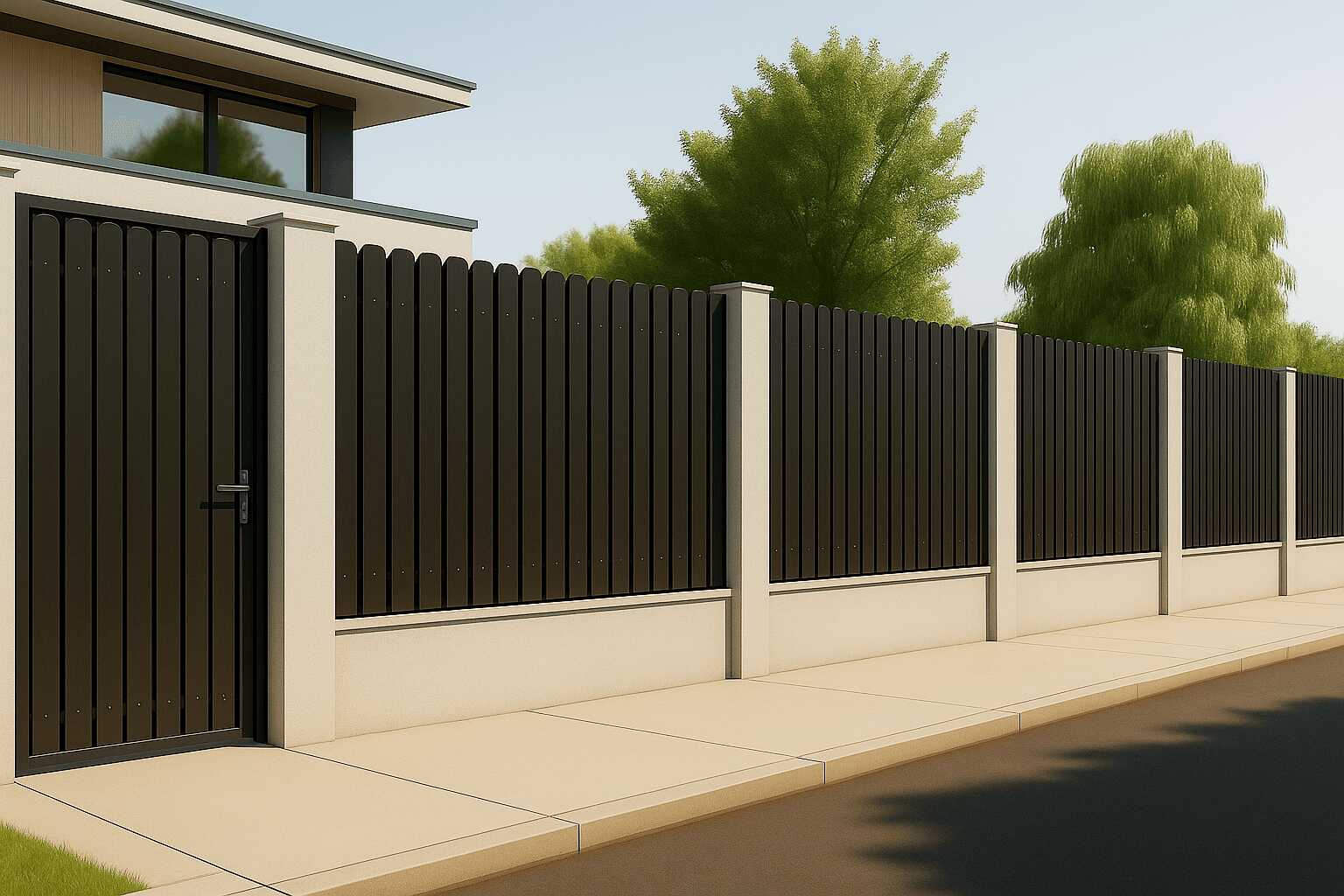 Стильное и функциональное решение, сочетающее разные материалы: камень, металл, дерево или профнастил. Такие заборы выглядят эстетично, обеспечивают повышенную прочность и долговечность. Например, каменные столбы с коваными секциями или деревянные пролёты с металлическим каркасом. Комбинации позволяют подчеркнуть дизайн участка, снизить стоимость конструкции без потери качества и адаптировать забор под любой ландшафт.